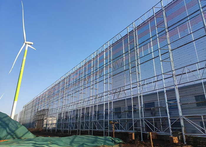 擋風(fēng)墻是由擋風(fēng)板、鋼結(jié)構(gòu)支撐和混凝土基礎(chǔ)組成。