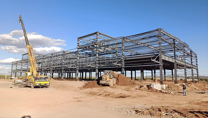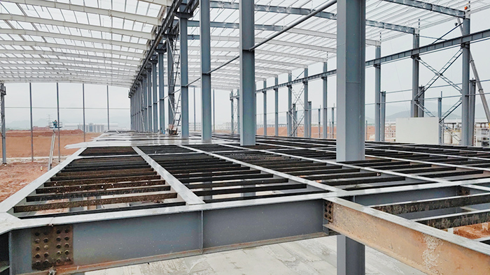 3. Steel frame: Steel frames come in single-layer and multi-layer types, with solid belly and lattice members. Multi story steel frames can effectively utilize building space, reduce the height of buildings, have a simple and beautiful shape, neat component specifications, easy installation on construction sites, and fast construction speed. They are currently the main structural form of lightweight structures and are mostly made of H-shaped steel.